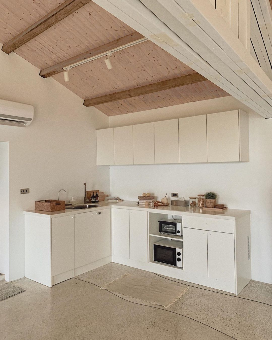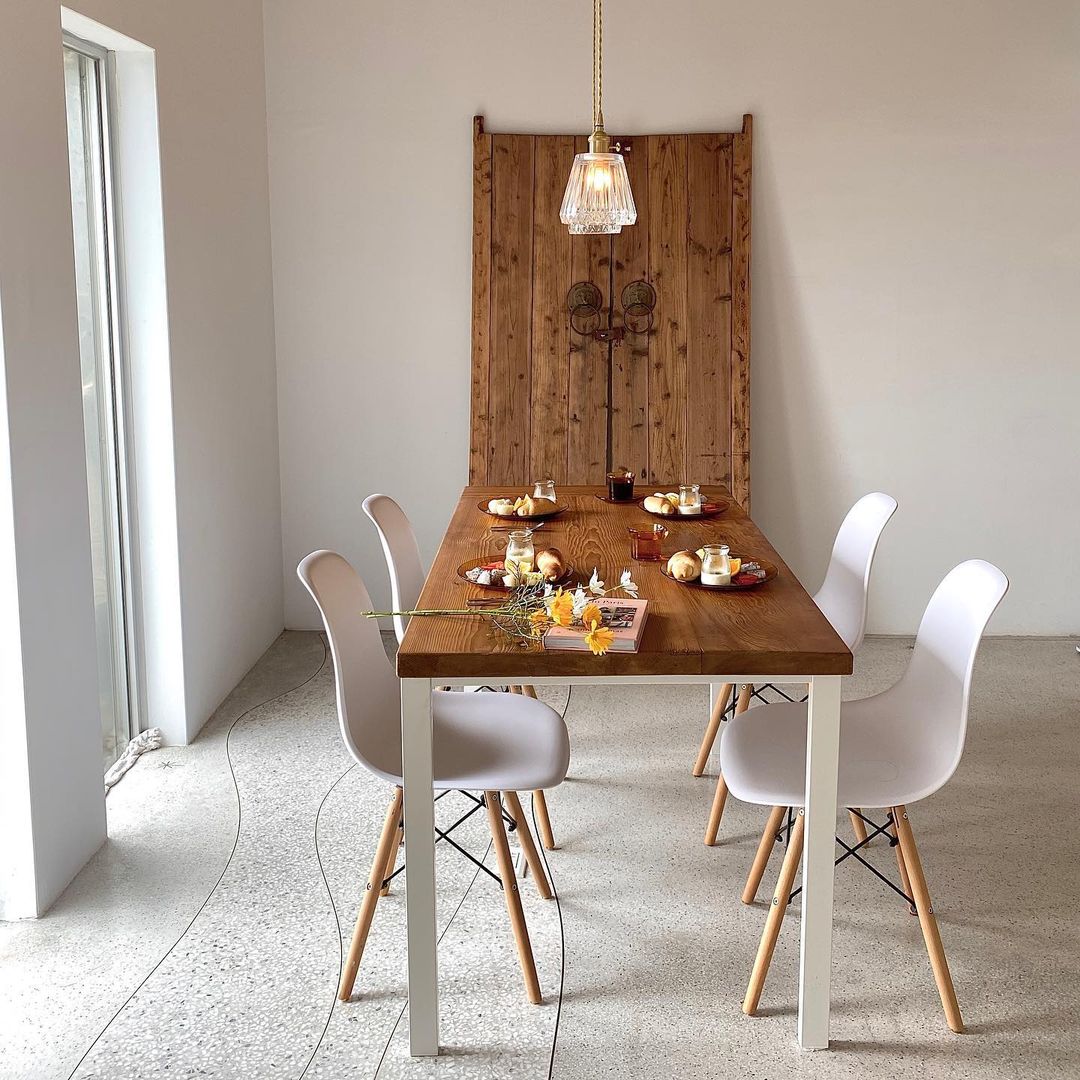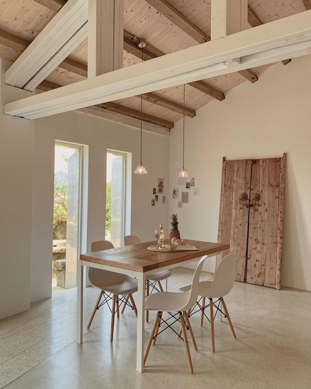 純白木質調的極簡裝潢搭配九份山景