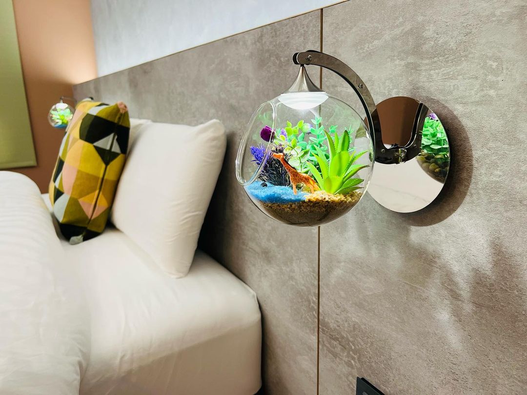 從一樓的大廳開始,入眼皆是溫暖的木質色調,而民宿中央的採光天井則設計成三層樓高的植物牆,夢幻的大自然氛圍令人相當驚艷。山禾曙旅宿設有電梯及停車位,提供六間完全不同風格的房型,分別為兩間雙人房、兩間四人房、兩間寵物友善雙人房,還有寵物專屬樓層哦!